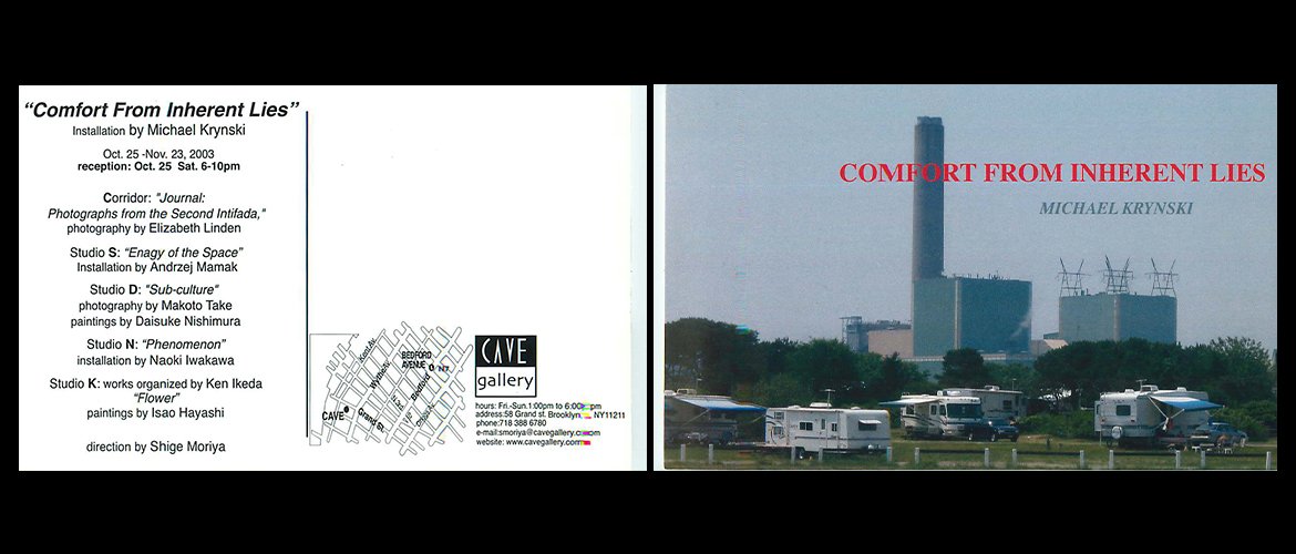 “Comfort From Inherent Lies” was an exhibition at CAVE curated by LEIMAY’s Artistic Co Director and interdisciplinary artist Shige Moriya, featuring an installation by Michael Krynski in the main studio.