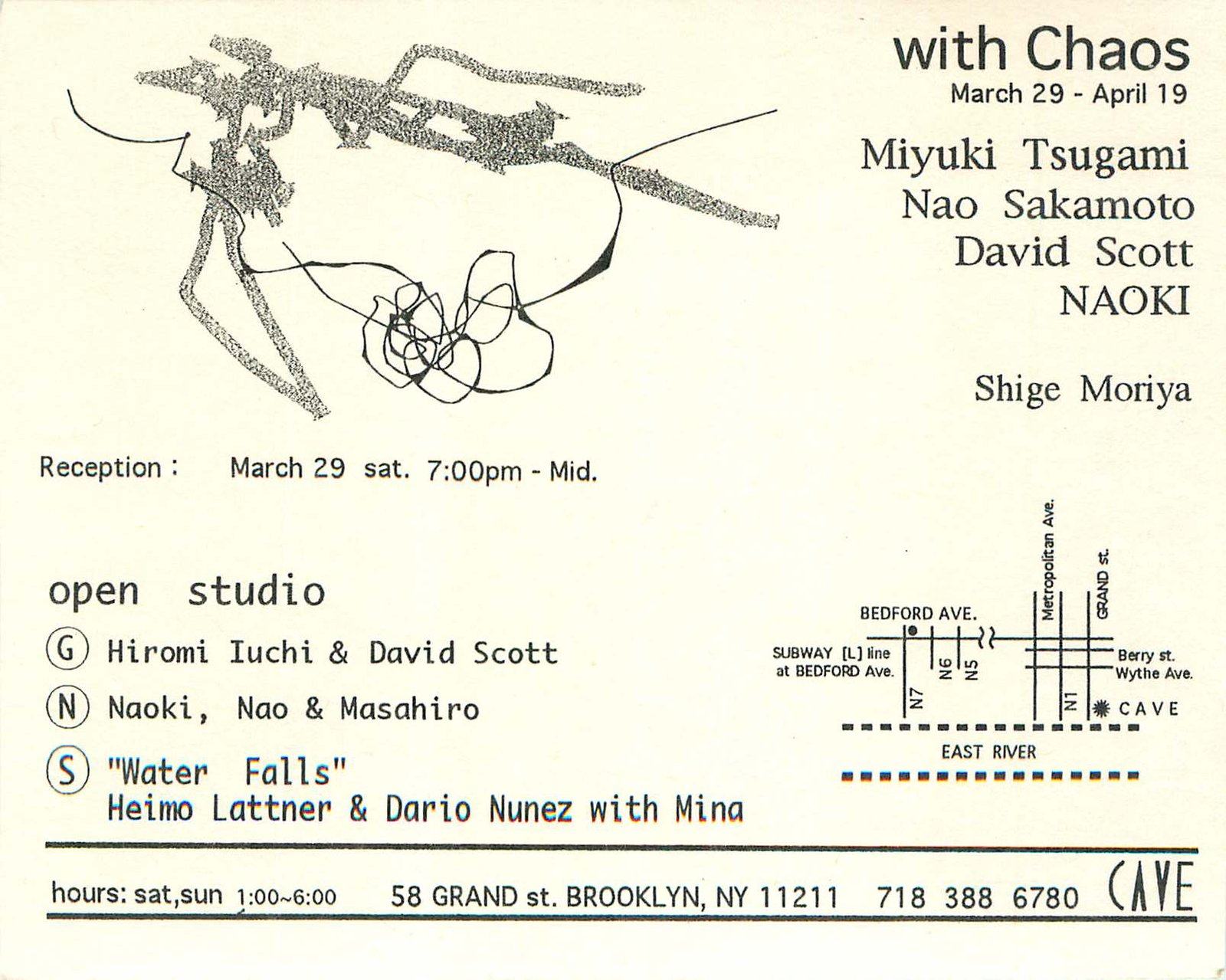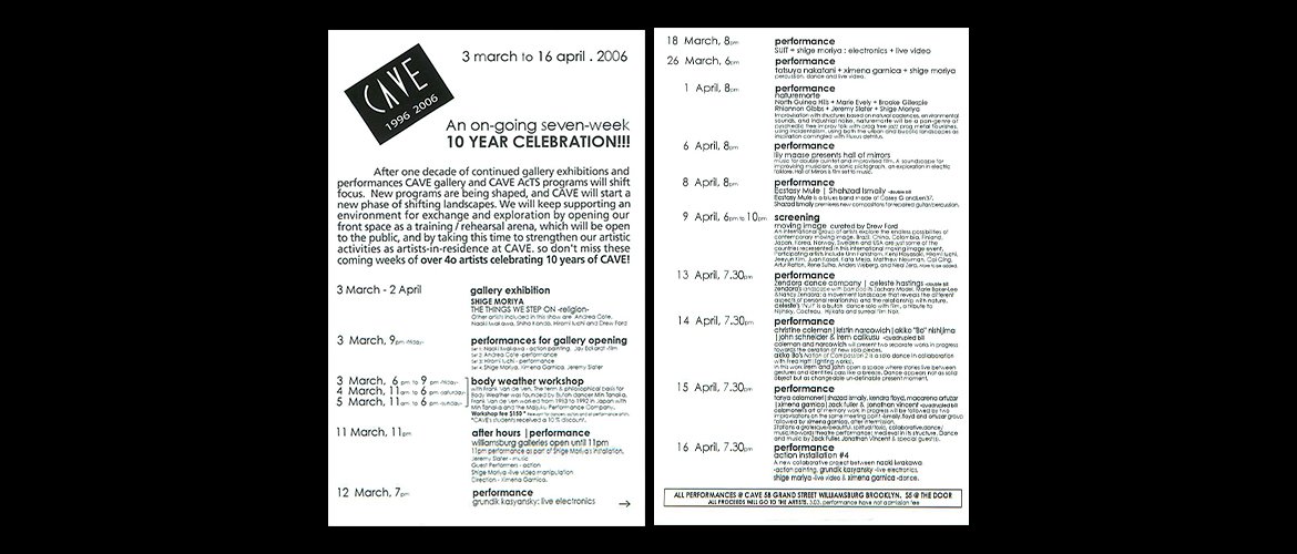 CAVE, the current home of LEIMAY, opened as a gallery and performance space in 1996. CAVE gallery featured 70 visual art exhibitions with 300 artists while also featuring live music and performance art. CAVE Gallery became well-known as a locus for experimentation in all mediums. Here, away from heavy commercial pressure, in an environment that supported exploration, artists were able to present work ‘nakedly’ by offering raw works charged with the spirit of the avant-garde. In addition to studio arts, openings often included music and other kinds of performances. From Japanese painter Naoki Iwakawa to No wave band DNA bassist Tim Wright, European sculptor Villu Jaanisoo, draughtsman David Opdyke to hundreds of known and unknown artists for ten years, CAVE gallery aggressively combined all manner of media, and each opening was a welcomed attack on the senses.